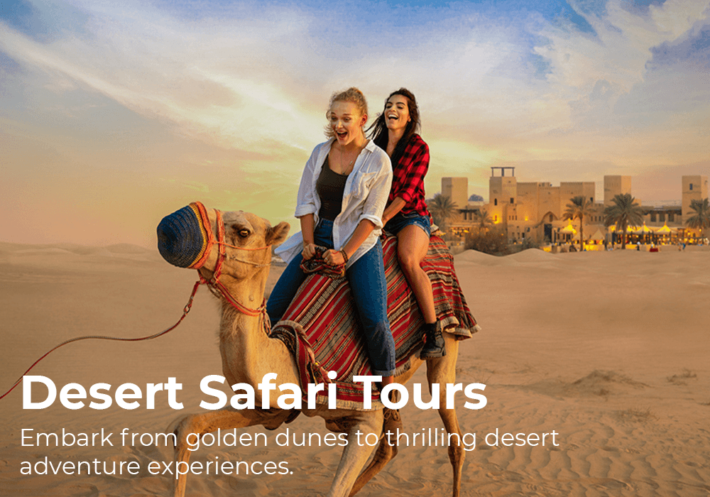 Dune bashing, camel ride, sandboarding, BBQ dinner, and live shows.